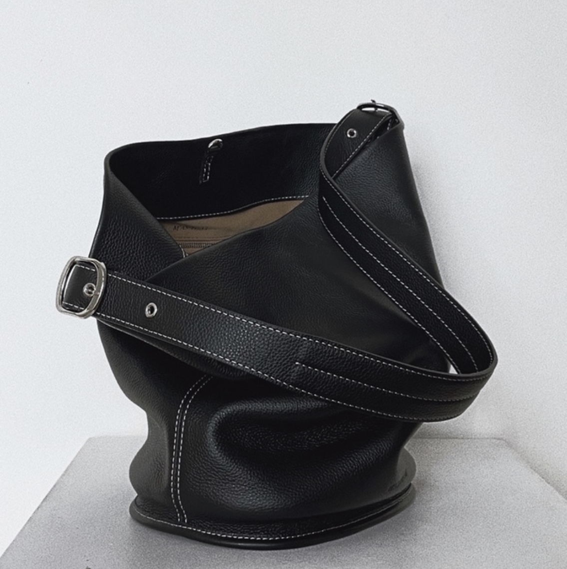 3. [유튜버 착용] Black Leather Daily Bucket Bag L