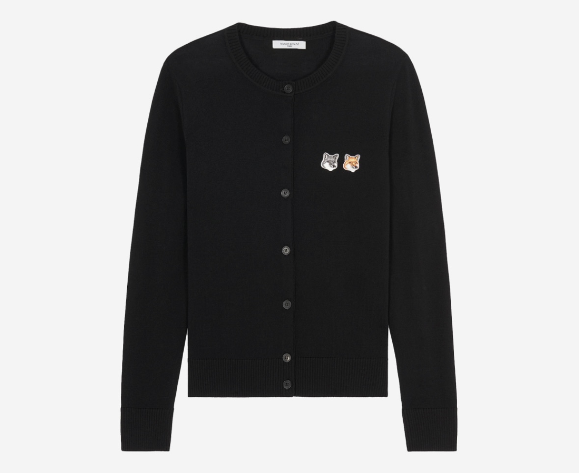 메종 키츠네의 제품들은 세련되면서도 클래식한 디자인을 특징으로 하며, 특히 여우 로고가 돋보이는 아이템들이 큰 인기를 끌고 있습니다. 대표적인 아이템으로는 더블 폭스 헤드 패치가 부착된 가디건과 풀오버 니트가 있습니다. 가디건은 단순하면서도 우아한 블랙 컬러로 다양한 코디에 어울리며, 더블 폭스 패치가 포인트로 들어가 있어 개성을 더해줍니다.