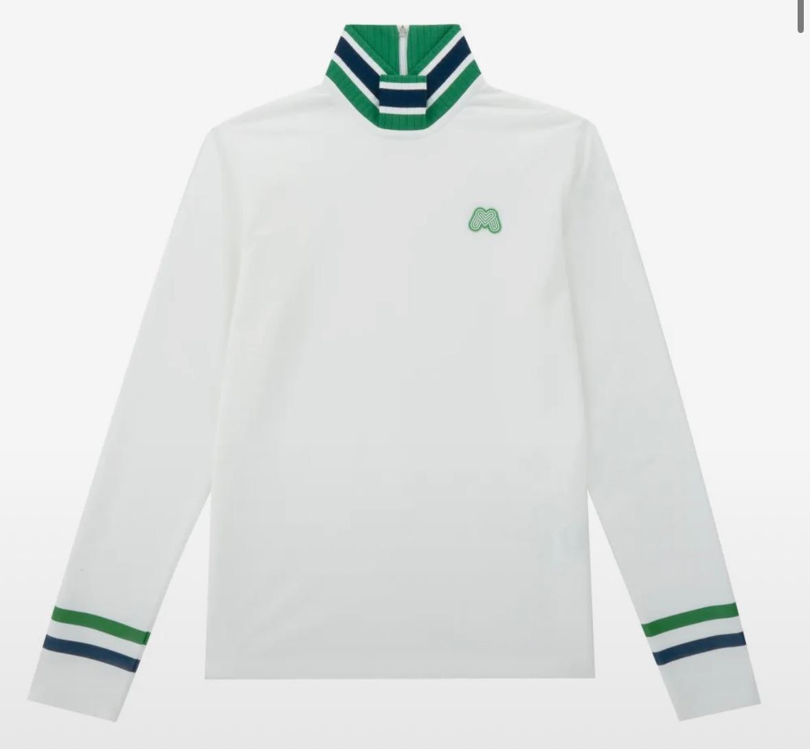 이 제품은 기본 반터틀 이너 티셔츠로, 그린과 화이트 컬러의 조합이 매력적인 디자인입니다. 넥라인과 소매에 배색 포인트를 더해 골프장에서 돋보이는 스타일을 연출할 수 있습니다. 지퍼 여밈 디자인으로 실용성과 세련됨을 모두 잡은 아이템입니다. 특히, 소매 부분에는 동일한 컬러의 웰딩 프린트를 적용해 완성도를 높였으며, 깔끔하고 정갈한 룩을 선호하는 분들에게 추천합니다.