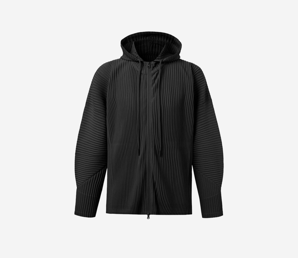 1. Two Way Pleats Hoodie Zip-Up Outer (Black)