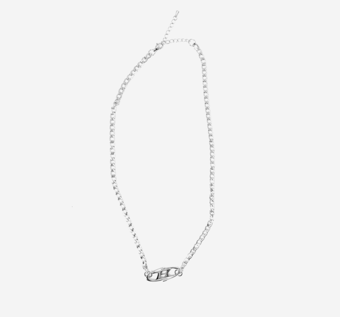 • 특징: 미니멀하면서도 감각적인 로고 네크리스로, 어떤 룩에도 잘 어울리는 실버 액세서리입니다.