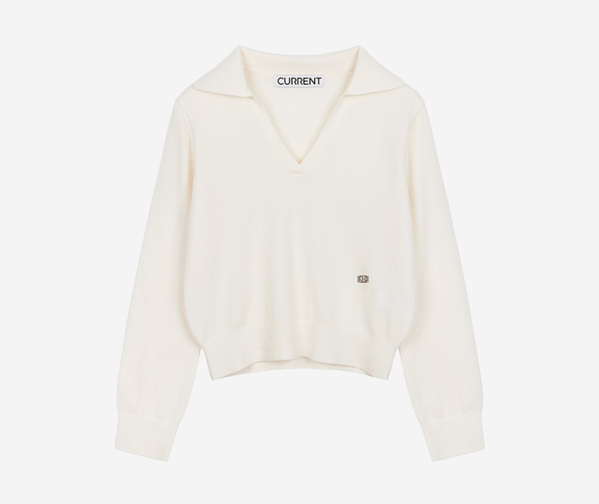 6. Current Collar V Neck Long Sleeve Ivory